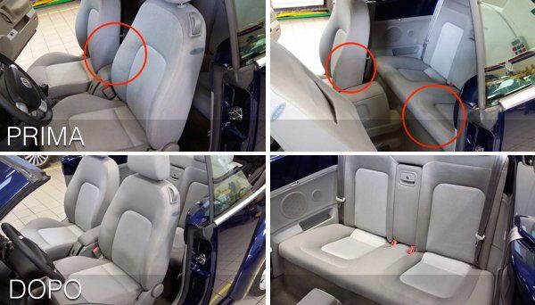 - Smacchiatura di sedili, pannelli, braccioli, ecc.